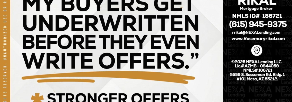 Hi, my name is Rosemary Rikal. I’m a Loan Officer with NEXA Lending LLC., offering personalized mortgage solutions, fast customized quotes, great rates and service with integrity.