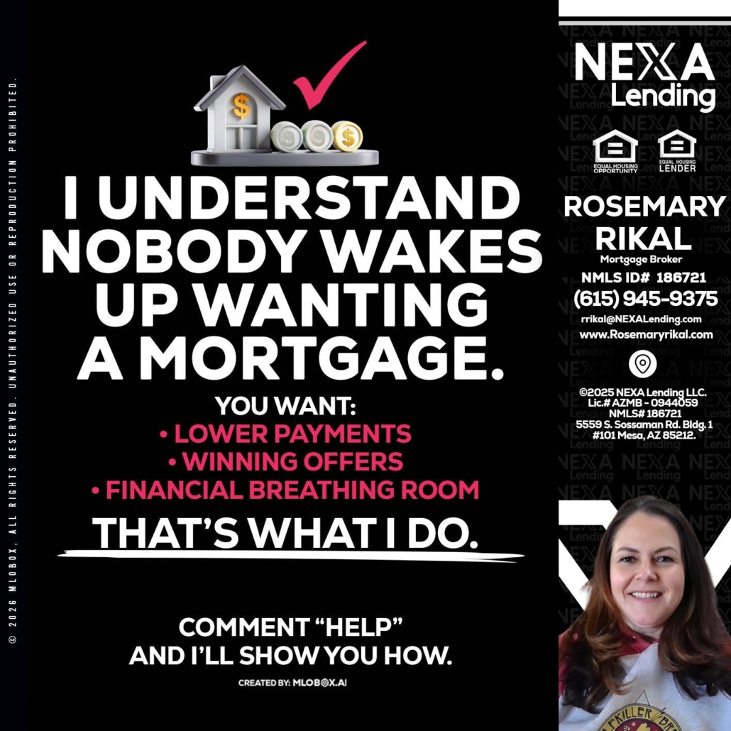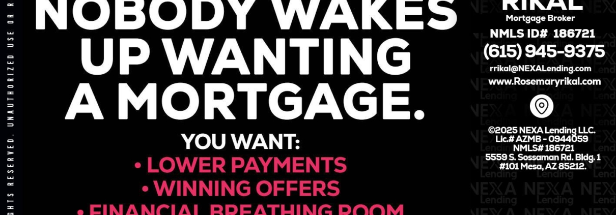 Hi, my name is Rosemary Rikal. I’m a Loan Officer with NEXA Lending LLC., offering personalized mortgage solutions, fast customized quotes, great rates and service with integrity.