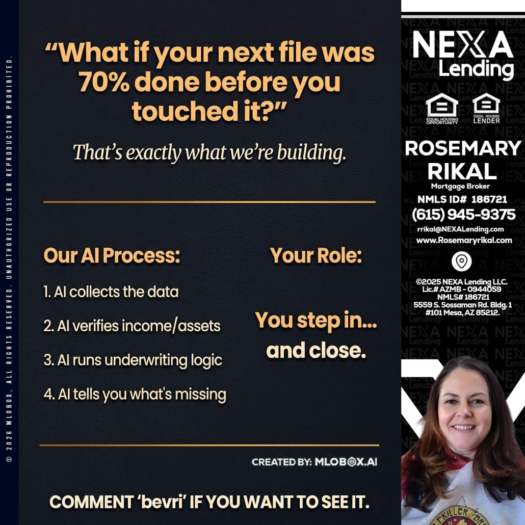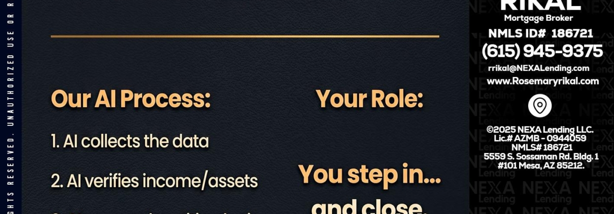 Hi, my name is Rosemary Rikal. I’m a Loan Officer with NEXA Lending LLC., offering personalized mortgage solutions, fast customized quotes, great rates and service with integrity.
